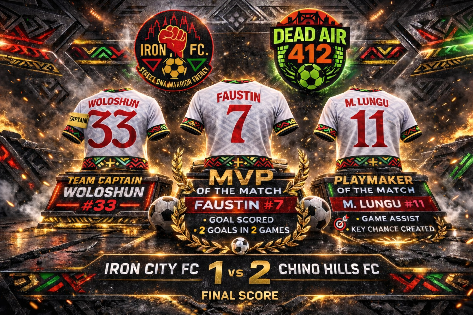 These awards aren’t just names — they represent our culture, our grit, and the fighting spirit of Iron City FC. From here on out, every match will highlight the warriors who embody these values.
